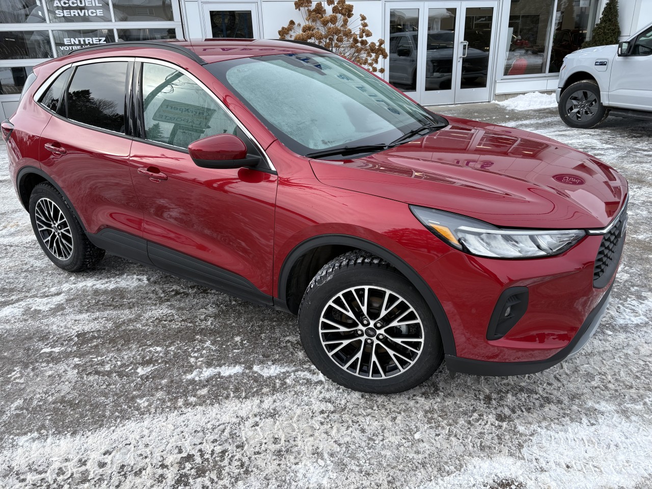 Voyez ce VUS Ford Escape PHEV à traction avant et batterie rechargeable de 14,4 kW pouvant parcourir jusqu'à environ 60 kilomètres entièrement électrique avant de passer en mode HYBRIDE avec une consommation moyenne de 5,3L/100 km. Le PHEV comprend Hayon ouverture électrique, Siège du conducteur à réglage électrique, Ensemble d'équipements électrique, Sièges avant chauffants et volant chauffant, mirroirs à commande électrique, Rail de toit, Éclauirage à DEL, Ensemble de fonction Ford Co-Pilot 360 avec feux de route/croisement automatique, détecteur de piéton avec freinage d'urgence automatique, capteurs de stationnement arrière, Caméra de recul, système de suivi de voie, Détection d'angles morts, Cordon de recharge et chargeur mobile de 120V/12A permettant de recharger votre batterie sans l'obligation d'installer une borne de recharge. C'est le véhicule parfait pour votre utilisation journalière. Consommation électrique 2,1Le/100 km Ce véhicule est également équipé d'un ensemble de remorquage pouvant remorquer 2000 lbs. Il vous attend.