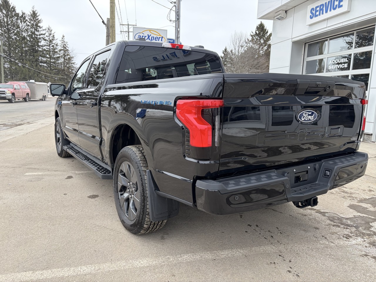 Le camion entièrement électrique Ford F-150 Lightning version FLASH avec  2 moteurs électrique, Batterie grande autonomie de 123 kWatts comprend garniture en matériel Active-X, Sièges a commande électrique / chauffants, Grand écran de 15 po verticale, Navigation connecté, Glace arrière coulissante avec dégivreurs, capteurs de stationnement, Caméra 360 degrés, Ford Co-Pilot 360 Assist 2,0 Console centrale, Jantes de 20 po en aluminium peint gris carbonisé, Marchepieds. En option Ensemble Remorquage MAX avec capacité de 10 000 lbs, Génératrice ProPower Onboard de 9,6 kW,