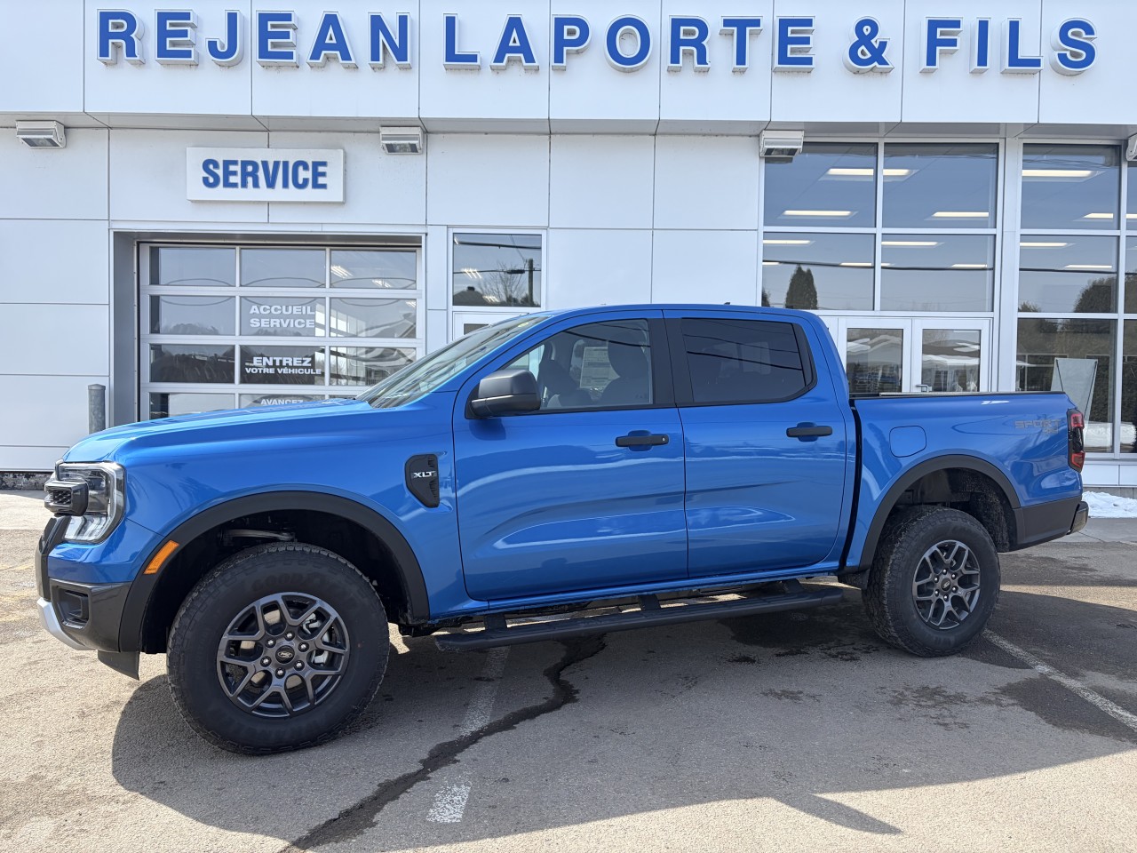 Le Ford Ranger XLT 2026 EcoBoost 4x4 est un camion intermédiaire robuste et polyvalent conçu pour offrir un équilibre entre capacité de travail, confort quotidien et technologies modernes, équipé d’un moteur 2,3 L EcoBoost 4 cylindres turbocompressé avec système Auto Start-Stop jumelé à une transmission automatique SelectShift à 10 rapports et un rouage 4x4 avec sélection électronique en marche (ESOF), il développe une puissance solide adaptée autant pour le remorquage que pour la conduite de tous les jours avec une capacité pouvant atteindre environ 7 500 lb et une boîte de chargement d’environ 1 232 litres, il repose sur un châssis en acier haute résistance entièrement caissé avec suspension avant indépendante et ressorts arrière à lames assurant durabilité et stabilité, côté conduite il propose plusieurs aides comme le BLIS avec alerte de trafic transversal et remorque, contrôle de stabilité AdvanceTrac, assistance au freinage d’urgence, maintien de voie et régulateur de vitesse, l’extérieur affiche un style XLT avec calandre et pare-chocs gris, phares et antibrouillards DEL, jantes aluminium de 17 pouces et crochets de remorquage avant, tandis que l’intérieur offre une cabine SuperCrew 5 places avec sièges en tissu, écran numérique de 8 pouces et écran central de 10 pouces avec système SYNC 4 compatible Apple CarPlay et Android Auto, navigation connectée, démarrage à distance et multiples options comme écran 12 pouces, recharge sans fil, caméra 360° et ensembles remorquage avancé, faisant du Ranger XLT 2026 un pickup moderne, fiable et polyvalent autant pour le travail que les loisirs.