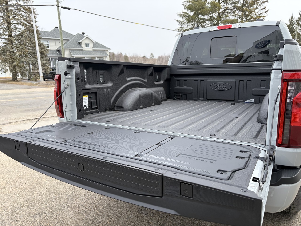 Ford F-150 XLT Hybride 2026 avec moteur 3.5 L PowerBoost Full Hybrid V6 (hybride essence/électrique), Transmission automatique hybride à 10 vitesses. Technologie Pro Power Onboard disponible, jusqu’à 7.2 kW pour alimenter des outils/équipements externes. Système multimédia SYNC 4 avec écran tactile de 12". Connexion 5G Wi-Fi hotspot. Climatisation réglable. Système de freinage d’urgence, capteurs de recul, Régulateur de vitesse adaptatif, assistance au stationnement. Sièges chauffants, interface intelligente avec commande vocale. Accès sans clé avec démarrage par bouton. Ensemble espace travail mobile, tapis de recharge sans fil, ensemble utilitaire plateau.