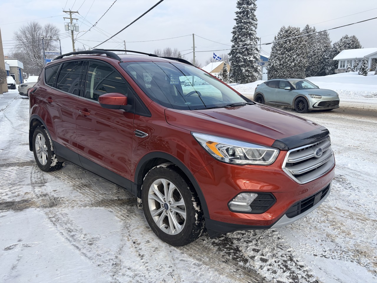Le Ford Escape 2019 est un multisegment utilitaire compact apprécié pour son équilibre entre confort, efficacité et utilité quotidienne. La version SEL se place au milieu de la gamme, offrant un bon niveau d’équipements et de technologies. La couleur Sedona Orange métallisé est un choix distinctif et dynamique. Moteur 4 cylindres 1,5 L EcoBoost turbocompressé. Transmission automatique à 6 vitesses. Sièges avant chauffants avec sellerie en tissu ActiveX de qualité. Siège conducteur à réglage électrique 10 positions avec soutien lombaire. Climatisation automatique à deux zones. Banquette arrière 60/40 rabattable, offrant plus d’espace de chargement. Accoudoirs, rangements pratiques et air filtration pour une ambiance agréable.  Système SYNC 3 avec écran tactile central, intégration Apple CarPlay/Android Auto, Bluetooth et commandes vocales. Radio AM/FM + USB + Bluetooth pour la connectivité audio. Démarrage à distance, clé intelligente et commandes audio au volant. Contrôle électronique de la stabilité AdvanceTrac avec régulateur de traction. Système de freins ABS, caméras de recul. Airbags multiples et alertes standards de Ford.