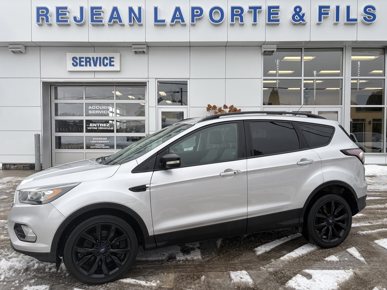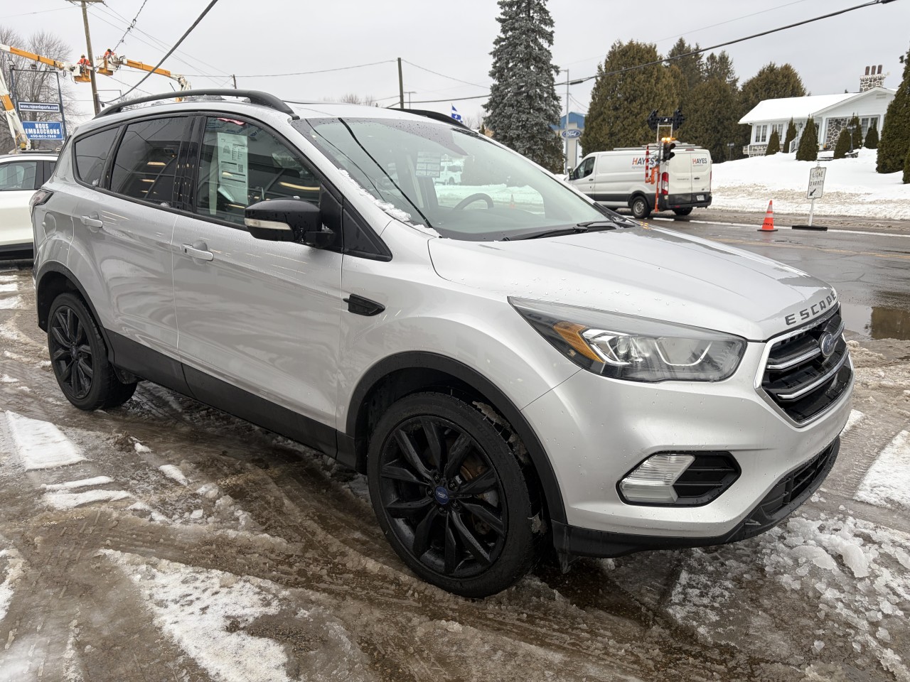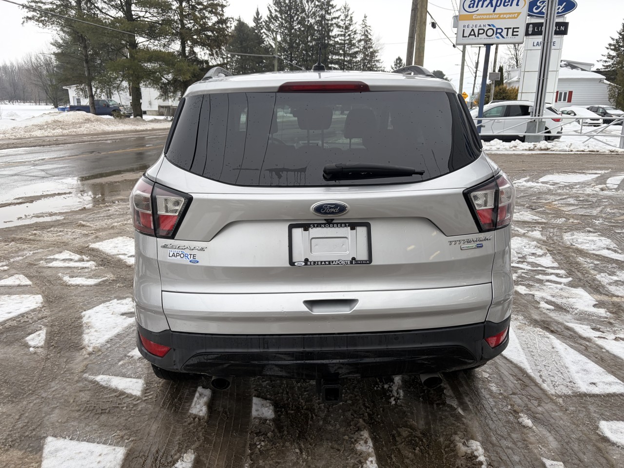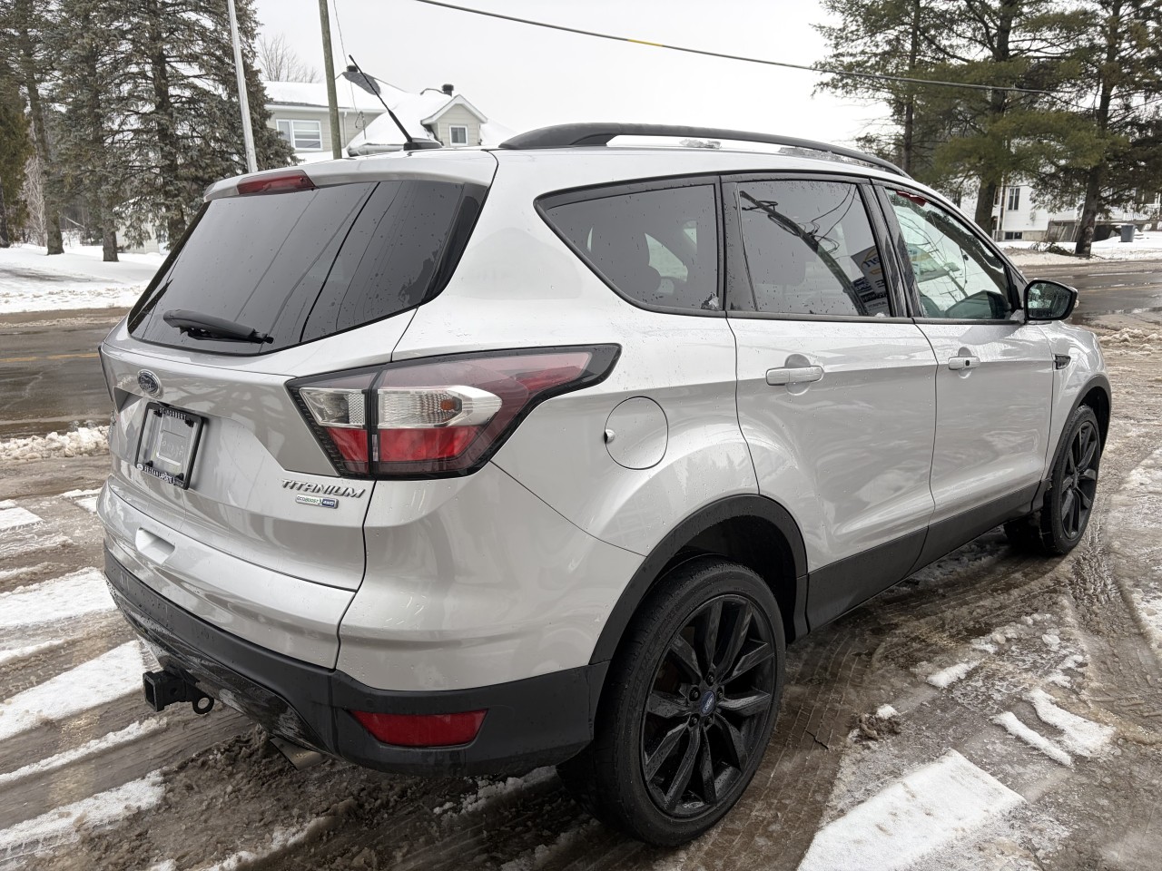 VUS Compact Ford Escape Titanium 4WD 2017 incluant 2 sièges à commande électrique en cuir / chauffants, volant chauffant, Climatisation 2 zones,  Moteur 4 cylindres 2,0L avec transmission automatique 6 vitesse SelectShift, Système de Navigation, Toit ouvrant panoramique 2 panneaux et pare-soleil. Cache-bagages, mémoire de position conducteur, Audio Haut Niveau Sony avec lecteur CD, Capteurs de stationnement arrière, Caméra de recul, Démarreur à distance, SYNC 3 avec écran de 8 po, Ouvre-porte de garage universel,  Ensemble remorquage avec attelage de 2 po et faisceaux 4 broches, Ensemble Décor Sport avec jantes en aluminium peint noir 19 po, Rail de toit, Hayon main-libre, Chauffe-moteur.  De plus nous installons 4 pneus flambant neufs 245/45R19 pour ce véhicule.